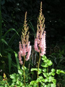Astilbe chenensis var. pumila has come into bloom in the secret garden. It is my toughest astilbe and thrives in dry soil and the shade created by taller plants that fall over on it. You would never know that these plants were covered by a fall blooming anemone only hours ago.