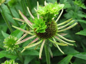 The coneflowers continue to thrive and some odd ball ones are coming into bloom. This guy is definitely and oddity.