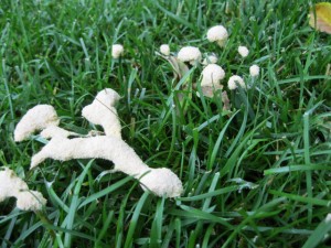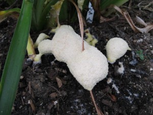 No doubt about it, the fungi did well this week. Well, at least the slime molds. We had several different ones making an appearance in various parts of the garden. The first was a white one in the formal garden growing around the base of a Siberian iris.