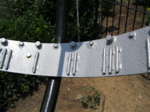 The head gardener has just about completed the sundial, it just needs the feathers welded on the arrow. It is quite handsome and adds a lot to the iris bed where it sits in full sun.