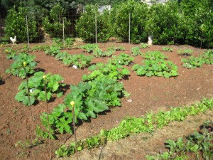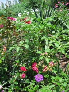 High temperatures and humidity, with occasional torrential rains set the stage for the gardens this week. The rain was wonderful for the vegetable but was a negative for the roses or at least for their spraying schedule. We have to spray in the morning when the hot weather descends on us because of the protective clothing I have to wear when spraying. On the other hand, we can’t spray early if dew or rain has left the roses wet. Tough choice.
