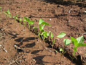 The wax beans have been nipped by rabbits but seem to be recovering.