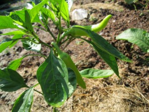 Not to be outdone, the banana peppers are producing a couple of fruit.
