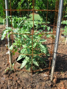 On the other hand, the tomatoes growing in the vegetable garden are doing well and beginning to fill their cages.