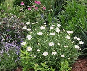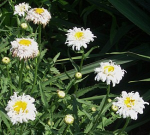 The double pink coneflowers ( Echinacea purpurea ‘Pink Double Delight’) have large full heads as do the Shasta daisies (Leucanthemum x superbum ‘Crazy Daisy’.