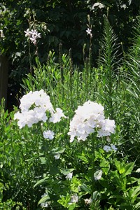 The garden phlox (Phlox paniculata ‘David’) bears full heads of flowers in front of the first blooms of white gaura (G. lindheimer ‘Whirling Butterflies’)