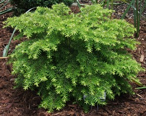 The trees in the dwarf conifer collection are looking good. They were new last season and had a rough time over the winter. This hemlock (Tsuga Canadensis ‘Gentch’s White’) is one of my favorites and is showing off its new white tips.