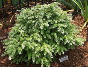 Another dwarf hemlock (Tsuga canadensis ‘Bennett’) is looking pretty fancy in its new light colored coat.