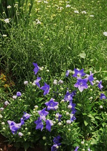 The vivid blue flowers of balloon flowers (Platycodon gradiflorus ‘Sentimental blue’) are set off by the airy stems of pale yellow scabiosa (S. ochroleuca).