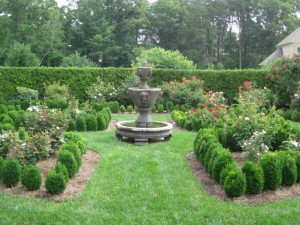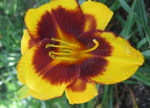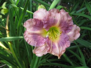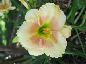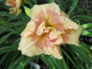 The allee boasts the greatest number of different daylilies. The earliest were simple yellow ones that began in May but now the sunny side of the allee is filled with many different kinds boasting many different colors.
