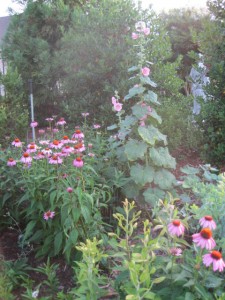 In the vegetable garden the squash are enjoying the heat and sunshine. I pick them when they are about 4″ long and I still have more than we can eat.