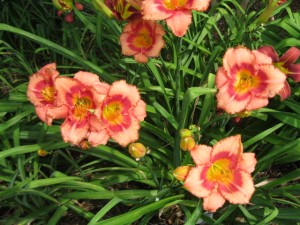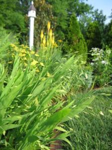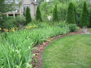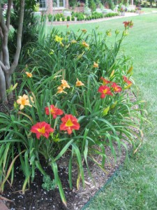I tried daylilies behind the iris in the pool garden but do not like the result because of the color; way to orange.