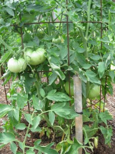 The tomato plants are heavy with fruit but its all green so it will be a while before we can harvest. I have only had a ripe tomato by the 4th of July once so I am not surprised but look forward to a hefty crop if our luck holds.