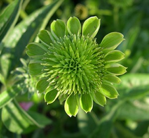 Most of my coneflowers are white or pink and are doing very well but a couple of my pink flowered plants are having a problem. They produce normal flowers but are also producing some oddities.