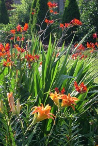 It looks great with the Montbretia (Crocosmia x crocosmiiflora ‘Lucifer’) which picks up its orange and red colors.