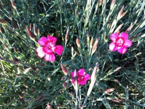 The Dianthus ‘Fire Witch’ is now joined by the Dianthus ‘Brilliant’ with its more spreading habit but less bloom time. It will bloom again in the fall.