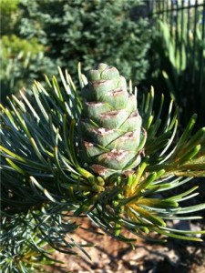 Other branches bear large seed cones that will become woody pine cones that will persist for several years.