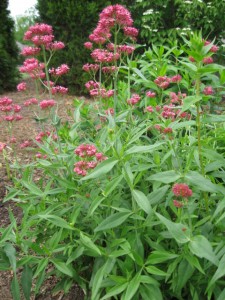 Pink centranthus flowers tops gray green foliage.
