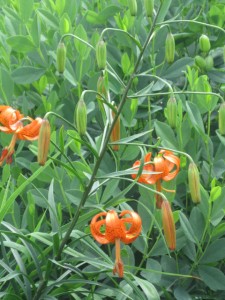 An orange species lily begins the bloom of the true lilies.