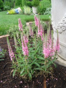 Pink Veronica continues the fuzzy spikes in a nearby parterre.