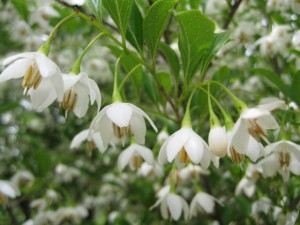 The beginning of May was marked by the bloom of the Styrax japonica trees in front of the house.