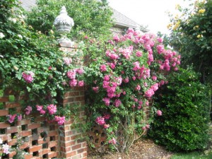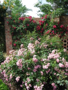 The rose ‘Belinda’ covers the wall of the secret garden.
