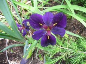 In the bog garden the Louisiana iris ‘Black Gamecock’ is blooming. I wish it would spread but so far I have just a small showing and fear it may be doomed.