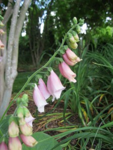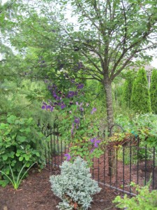 Some foxglove returned from last year to lend its soft pink to the shade interior of the allee.