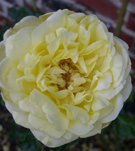 Deep yellow buds open as mid yellow flowers that are delicately scented with a fruity fragrance. When the flowers open fully you can see the mass of loose, small, dark yellow inner petals that contrast with the larger, paler outside ones.