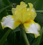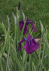 But as the German and Siberian iris fade, one of my Japanese iris begins. I grow this one for its variegated foliage so these large, open, purple flowers are a bonus.