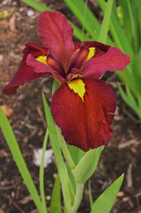 The Louisiana Iris ‘Ann Chowing’ beginning its bloom with its current red flowers.
