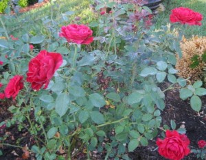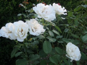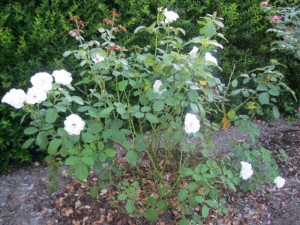 The prettiest roses this week are a red and a white. The red one is a cutting from a bush we had in Annapolis and we can not find anyone who can identify it (we think it’s ‘Oklahoma’). The bush is a bit ungainly but is tough and has survived many hardships.