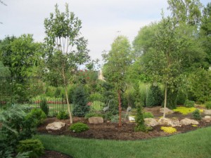 We went to the local garden centers that sold rocks and found some great looking small boulders from the Tennesee mountains near Chattanooga. Size and weight were a huge issue since the bed with the dwarf conifers was in the backyard and can not be reached by a truck because of iron gates and fences. Our rocks arrived on our landscaper’s trailer early in the morning.