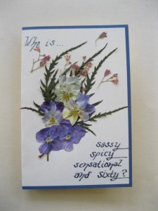 Over the weekend I made a birthday card for a dear friend using the heuchera with leaves from the Japanese maple that is also in the secret garden and the pansies that grew in the formal garden.