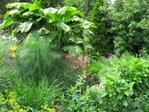 The fennel is growing rapidly and I have already cut it back twice; their textures is a nice contrast to the large heavy leaves of the banana.