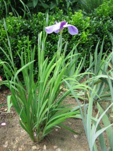 In the pool garden the two Japanese iris plants that I transplanted there last fall are both blooming.