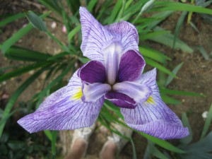This specimen was purchased in Atlanta at an end of the season sale and was planted in the bog garden 2 years ago. Japanese iris like moisture especially when flowering and it has done extremely well here. The flowers of all Japanese iris are more open and flat than German or Siberian iris.