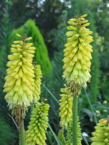 The pokers are a lovely buttery color and provide a unique texture in the garden.