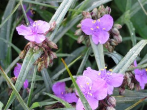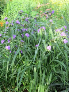 I have clumps of tradescantia growing through out the formal garden that create rhythm and unity in the garden. Most of the clumps are this vivid blue.