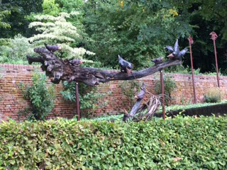 Whimsical sculpture adorns the grass parterres.
