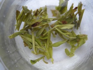 The good news is that several cups can be made successively with one teaspoon of dried tea leaves. The bad news for me is that I just don’t care much for the taste of green tea. Apparently I am not the only one that feels this way and the Chinese salesgirl recommended adding dried orange rind that she also had for sale. I tried orange rind when I returned home but found that a bag of black tea dunked into the cup of green tea does the trick too.