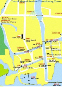 Zhouzhuang is located south of the Yangtze River, southeast of the city of Souzhou, about a two hour drive from Shanghia.The city dates back to 1086, the time of the northern Song Dynasty, and has close to 100 classic homes, many built on the river’s edges. The Zhang house is located on the main river just south of the Twin Bridges (lower right quadrant of map).