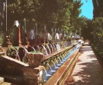 A long walkway with 100 fountains leads from the Rometta to the other side of the garden. The fountains are of four types each having a different spray: eagles, obelisks, fleur de lis and small boats. Originally the fountains were decorated with stucco but the stucco has disappeared. The sound of the water is as enchanting as the sight of it.