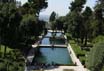Three large rectangular fish ponds with 48 jets dominate the center area of the lower level. Originally they were used to raise trout and other fish for the table of the cardinal but now they provide a welcome contrast to the energy of the fountains all around them. The reflection of the large trees enhance the effect.