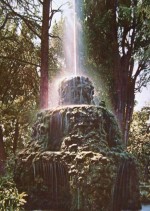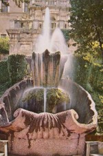 Just down from the villa on the central axis, is a giant shell like fountain holding a floral stone chalice emitting a spray of water. Built between 1660 and 1661, it may have been designed by G. Lorenzo Bellini.