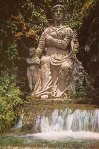 The man responsible for this magnificent garden was Cardinal Ippolito II D’Este, second son of the Duke of Ferrara and the infamous Lucrezia Borgia, who was educated in his father’s court at one of its most brilliant periods. He was cultured, artistic, creative, and aspired to the papacy so when he failed to gain that post and was retired to Tivoli as governor in 1550, he turned his energies to making the humble Benedictine monastery there into a grandiose palace worthy of his expectations. He hired the renowned mannerist architect Neapolitan Pirro Ligorio to design the palace and garden and when the building was completed commissioned the most distinguished artists of the times to decorate it. Meanwhile, Ligorio began the garden by removing a quarter of the existing town and creating terraces along a central axis with secondary cross axes each with their special water features and other adornments.