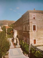 An old etching shows the extent of the original plan of the villa; the gardens are on a steep hillside and are meant to be entered from the bottom. A series of vistas was created as the visitor walked up the hillside through the garden culminating in the palace itself.