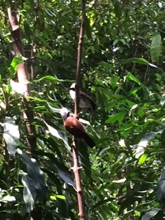 Beautiful birds fly trough the foliage, occasionally landing to eat and sing.