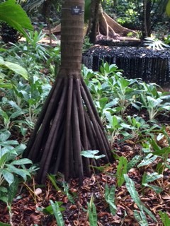 This tembusa tree (Cyrtophyllum fragrans (aka Fagraea fragrans) is reportedly over 150 years old and is 90’ tall and over 25’ in girth. It is evergreen with very durable wood and deeply fissured bark. The creamy-white flowers are fragrant and appear in both spring and fall.