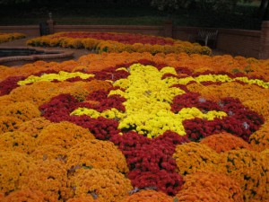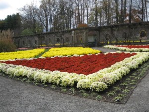 Mums took over from the annuals that are bedded out in the Walled Garden during the summer.